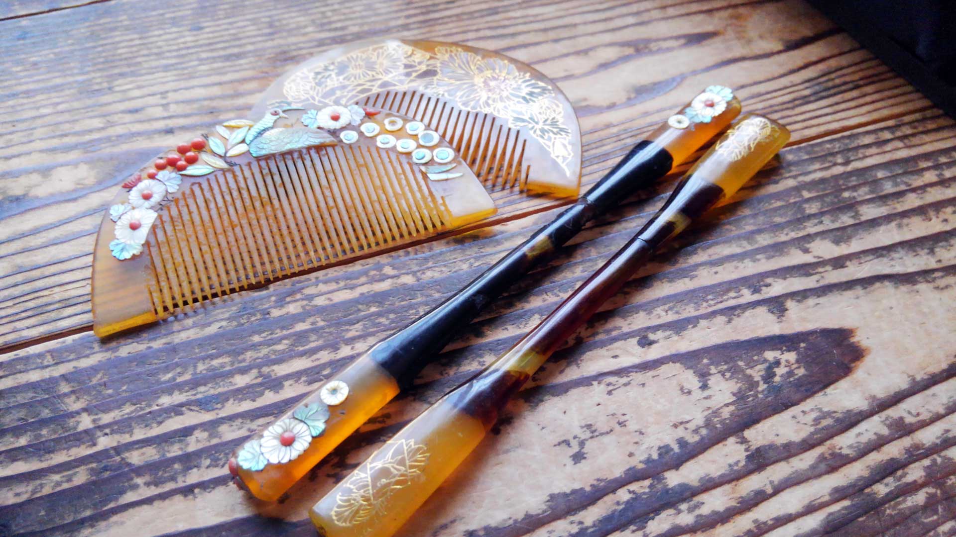 モデルさんの自毛で結い上げています。飾りの櫛は先祖伝来のもの。遥か1世紀以上の時を経ても色あせない”和”の世界は貴女の魅力を引き出します。